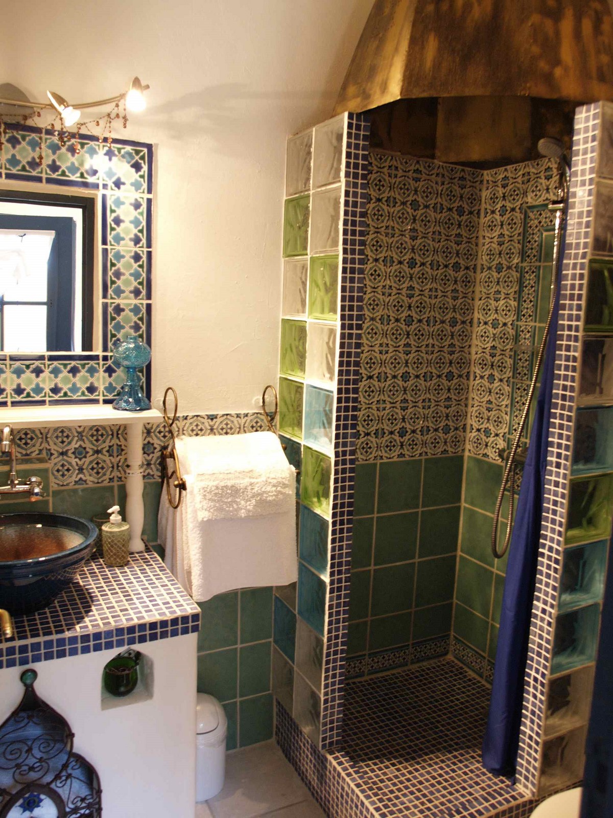 la douche en pavés de verre et son dôme etoilé